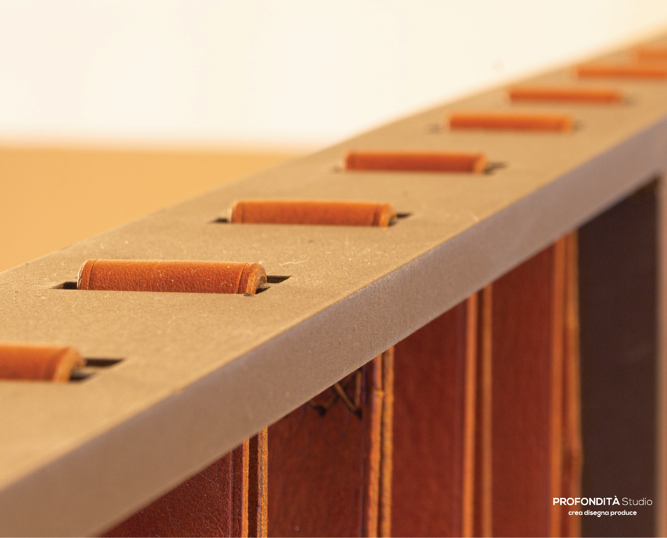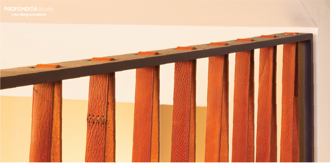 Per accentuare la leggerezza del parapetto la cinta è realizzata in Cuoio, bordata e rilegata a mano. Questo materiale dona un certo fascino, grazie a un effetto invecchiato di grande bellezza estetica e charme.